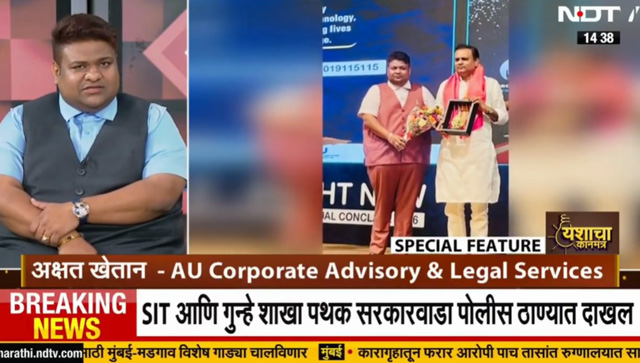 Success leaves clues. Mr. Akshat Khetan, Founder of AU Corporate Advisory and Legal Services, featured on NDTV Marathi’s “Yashache Kanmantra” sharing powerful insights on entrepreneurship and leadership.