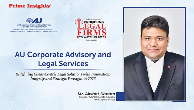 Featured among The Most Promising Legal Firms to Watch in 2025 by Prime Insights Magazine, AU Corporate Advisory & Legal Services continues to set benchmarks in corporate law, compliance, IP and litigation. In the exclusive Q&A, Mr. Akshat Khetan shared his dedication, strength and client-centric vision, reflecting the firm’s core values of integrity, innovation and strategic excellence.