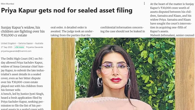 Talking to Moneycontrol, Akshat Khetan, Founder of AU Corporate Advisory & Legal Services, observed: “The Court has struck the right balance, sensitive details need not enter the public domain, but heirs cannot be kept in the dark. By allowing sealed cover filings while rejecting Priya Kapur's NDA demand, the Delhi High Court reaffirmed that heirs have the right to know what constitutes their father's estate without involving the media unnecessarily.”