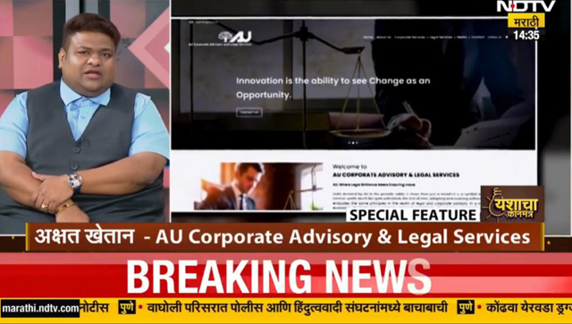 Success leaves clues. Mr. Akshat Khetan, Founder of AU Corporate Advisory and Legal Services, featured on NDTV Marathi’s “Yashache Kanmantra” sharing powerful insights on entrepreneurship and leadership.